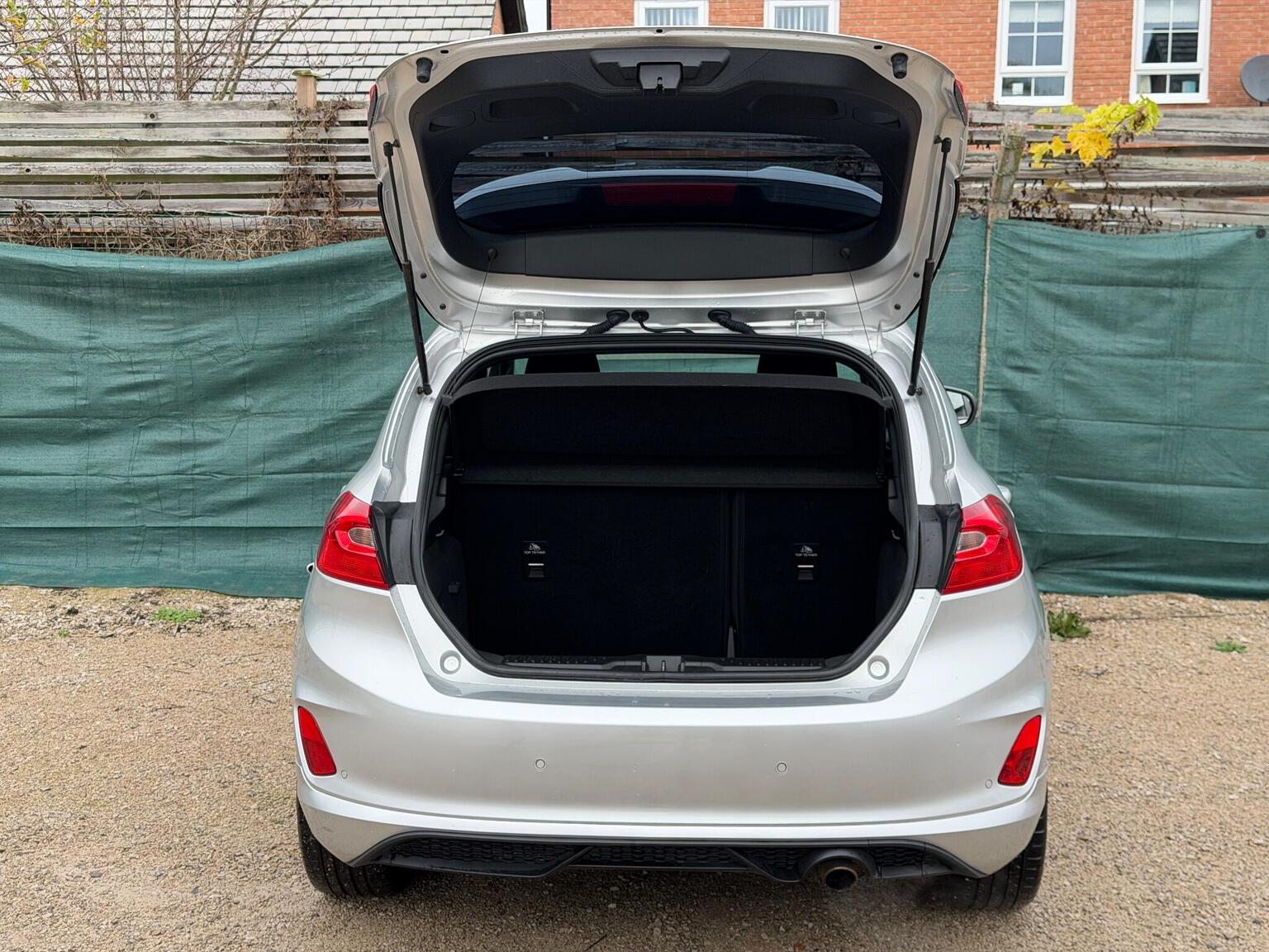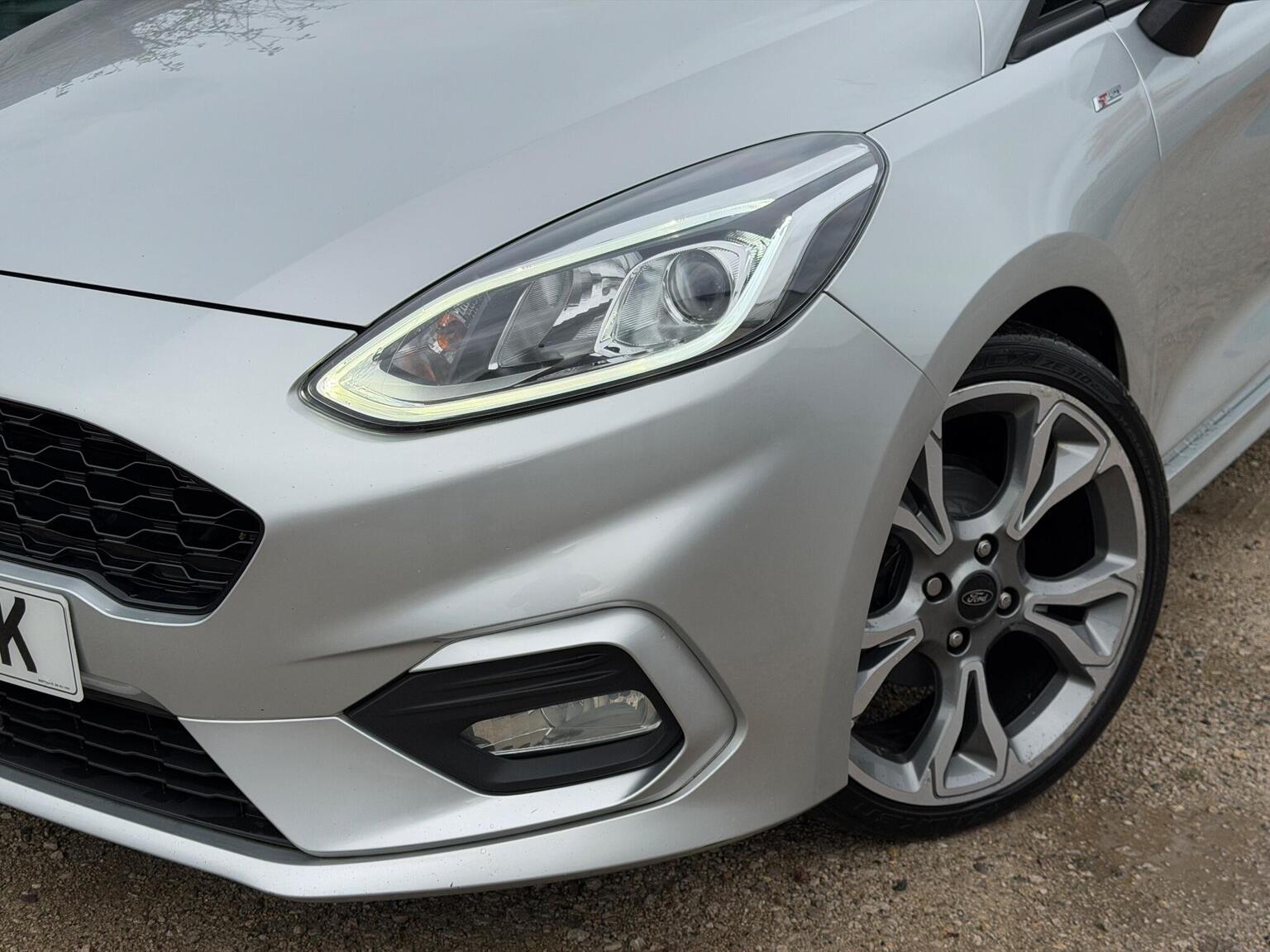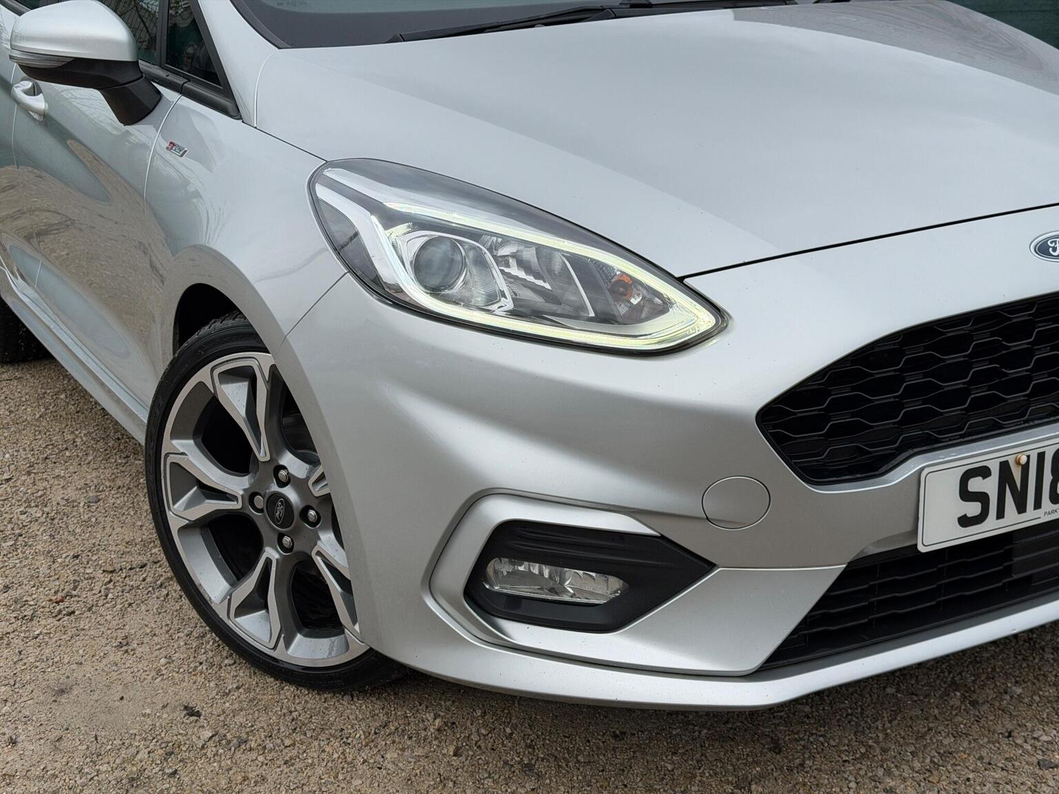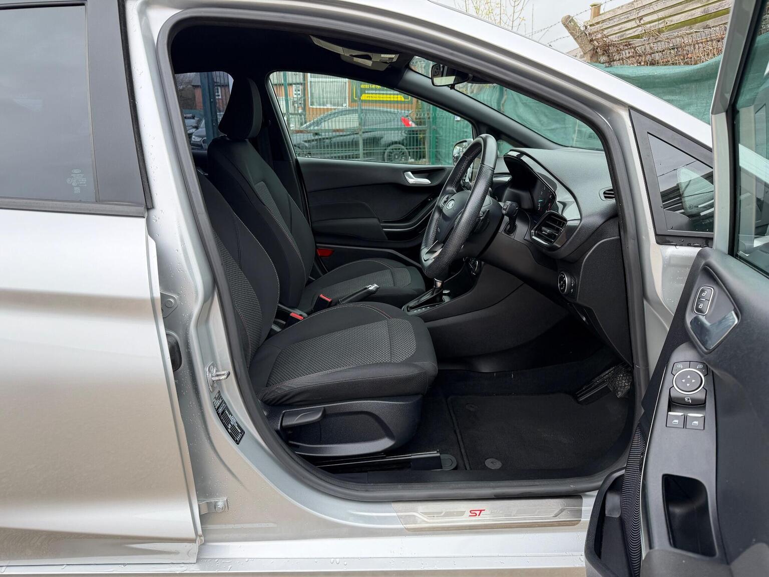 Boasting a full service history and a clear vehicle history check, this 2018 Ford Fiesta T ST Line offers excellent provenance. Powered by a 1.0L Euro 6 petrol engine, this ST Line trim model comes with a 3 month warranty and a 12 month MOT provided on purchase. It has covered 59,000 miles, with its last service completed at this mileage. Notable features include the City Pack with rear parking assistance, a Ford Navigation System with Ford SYNC 3 supporting Apple CarPlay and Android Auto, and striking 18 inch ST Line 5 spoke alloy wheels in Rock Metallic with a machined finish.