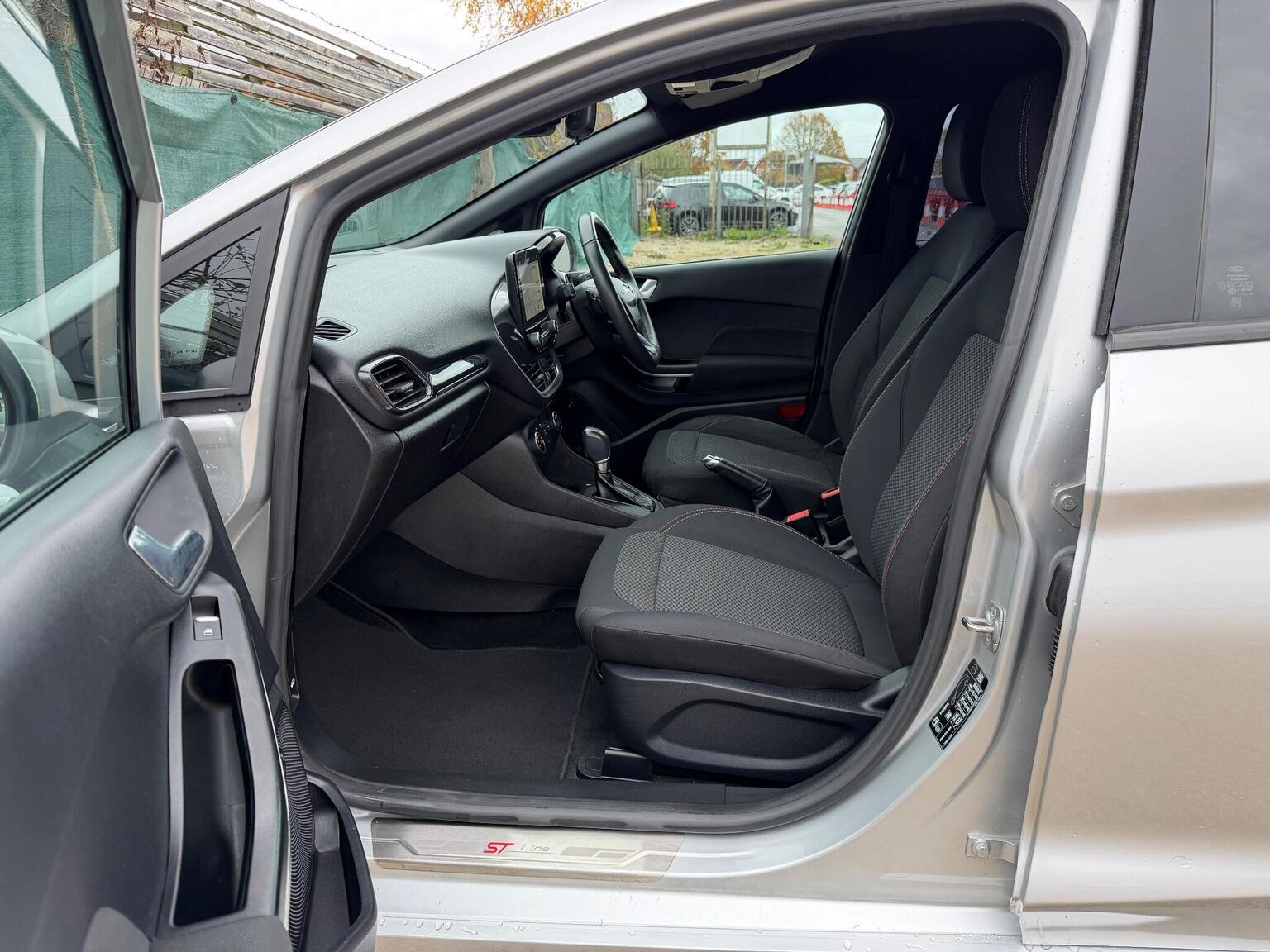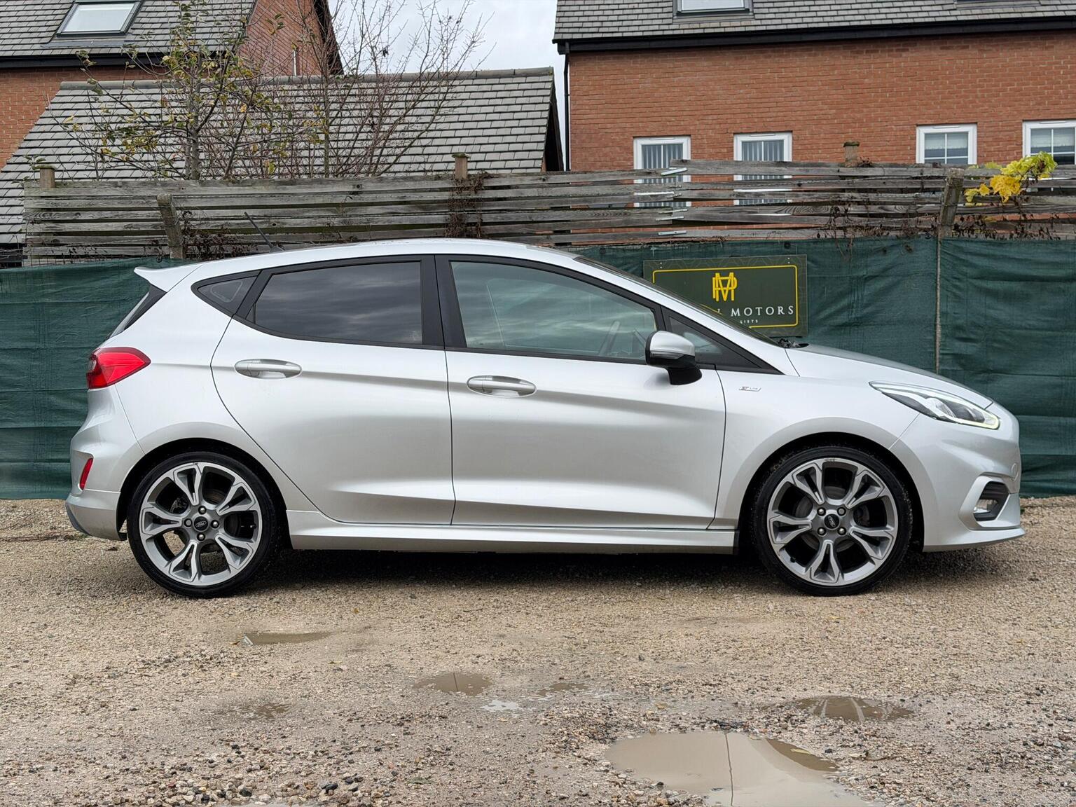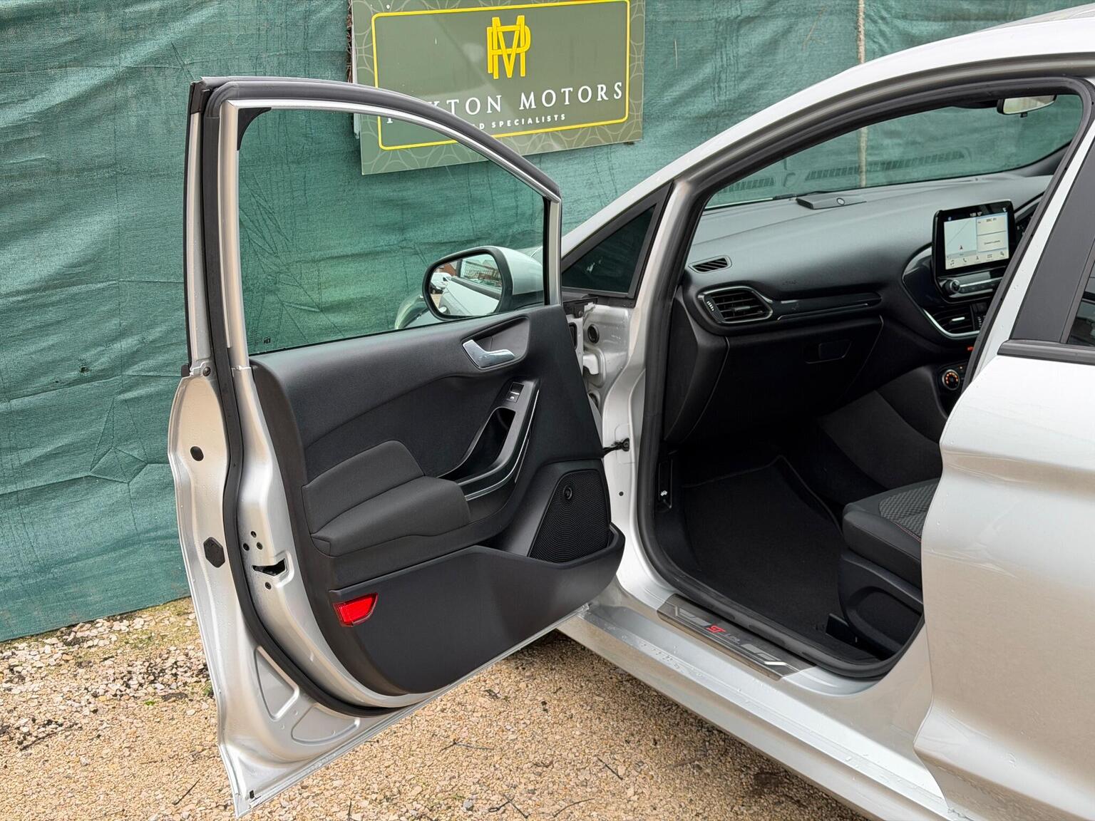 Boasting a full service history and a clear vehicle history check, this 2018 Ford Fiesta T ST Line offers excellent provenance. Powered by a 1.0L Euro 6 petrol engine, this ST Line trim model comes with a 3 month warranty and a 12 month MOT provided on purchase. It has covered 59,000 miles, with its last service completed at this mileage. Notable features include the City Pack with rear parking assistance, a Ford Navigation System with Ford SYNC 3 supporting Apple CarPlay and Android Auto, and striking 18 inch ST Line 5 spoke alloy wheels in Rock Metallic with a machined finish.