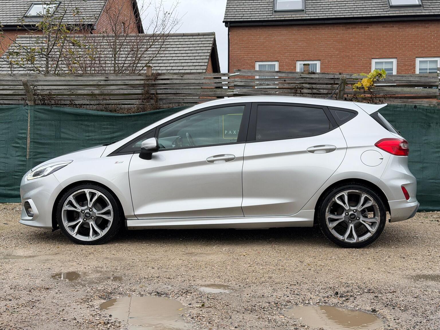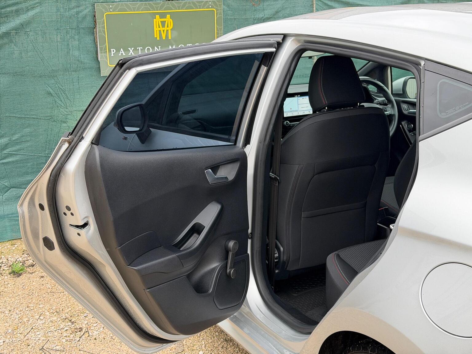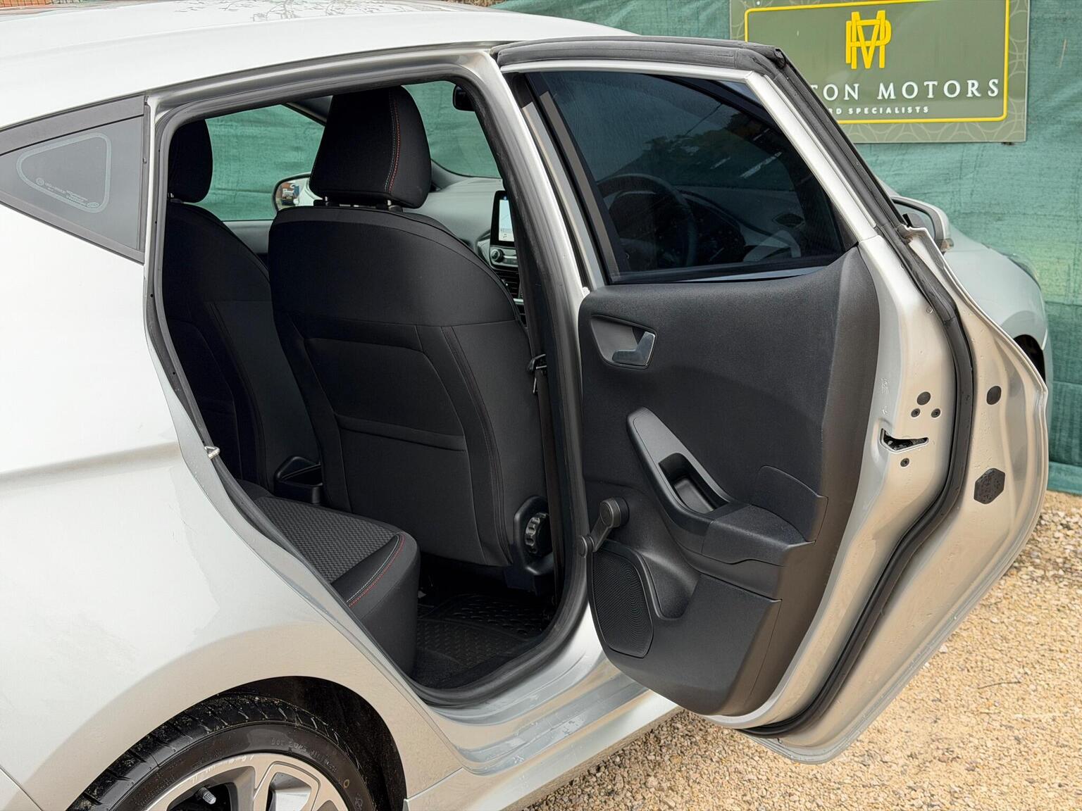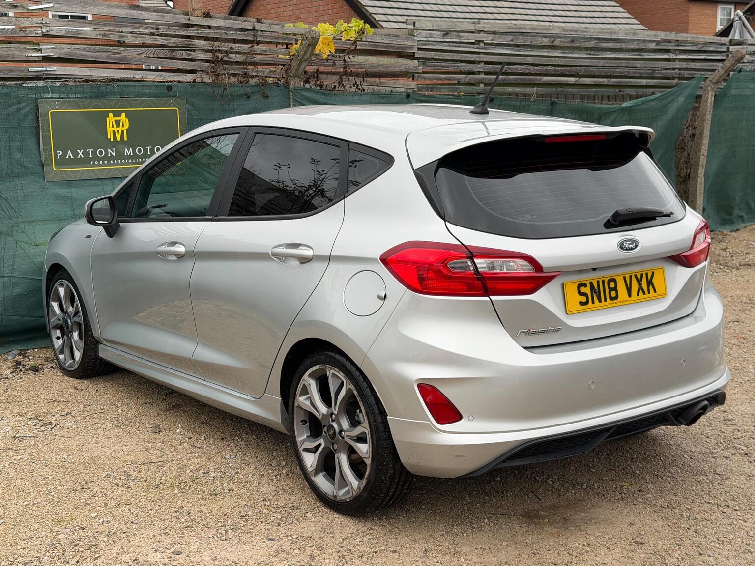 Boasting a full service history and a clear vehicle history check, this 2018 Ford Fiesta T ST Line offers excellent provenance. Powered by a 1.0L Euro 6 petrol engine, this ST Line trim model comes with a 3 month warranty and a 12 month MOT provided on purchase. It has covered 59,000 miles, with its last service completed at this mileage. Notable features include the City Pack with rear parking assistance, a Ford Navigation System with Ford SYNC 3 supporting Apple CarPlay and Android Auto, and striking 18 inch ST Line 5 spoke alloy wheels in Rock Metallic with a machined finish.